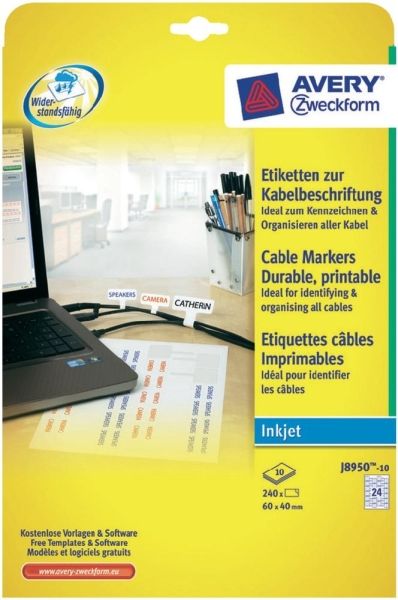 Etykiety do oznaczania kabli 60 X 40 mm AVERY do drukarek atramentowych 24 etykiet/A4 - D0952