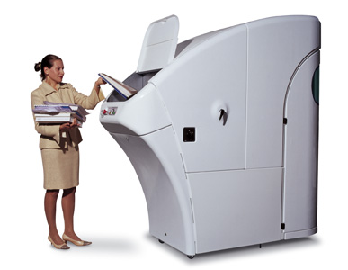 - Niszczy ogromne ilości papieru, tektury, kartonu, dyskietek, płyt CD, a nawet puszek aluminiowych i butelek plastikowych